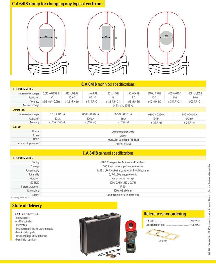 法國(guó)CA接地回路電阻鉗表C.A 6418技術(shù)參數(shù)