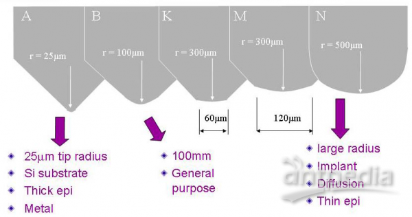根據(jù)應(yīng)用不同工藝要求對應(yīng)的探針類型詳細(xì)說明: