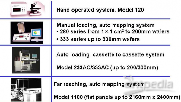· 測量尺寸:晶圓尺寸:2-8寸(333系列可測量大至12寸晶圓,1100系列可測量大至2160mmX2400mm平板系列)