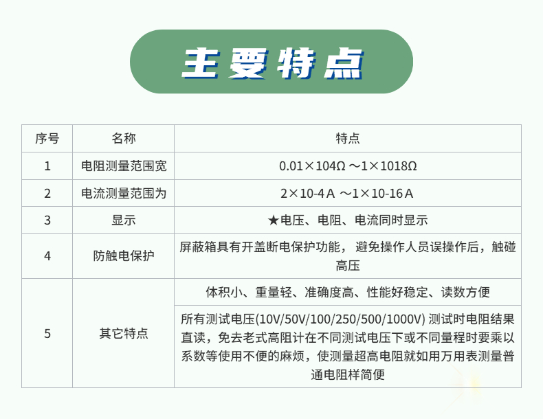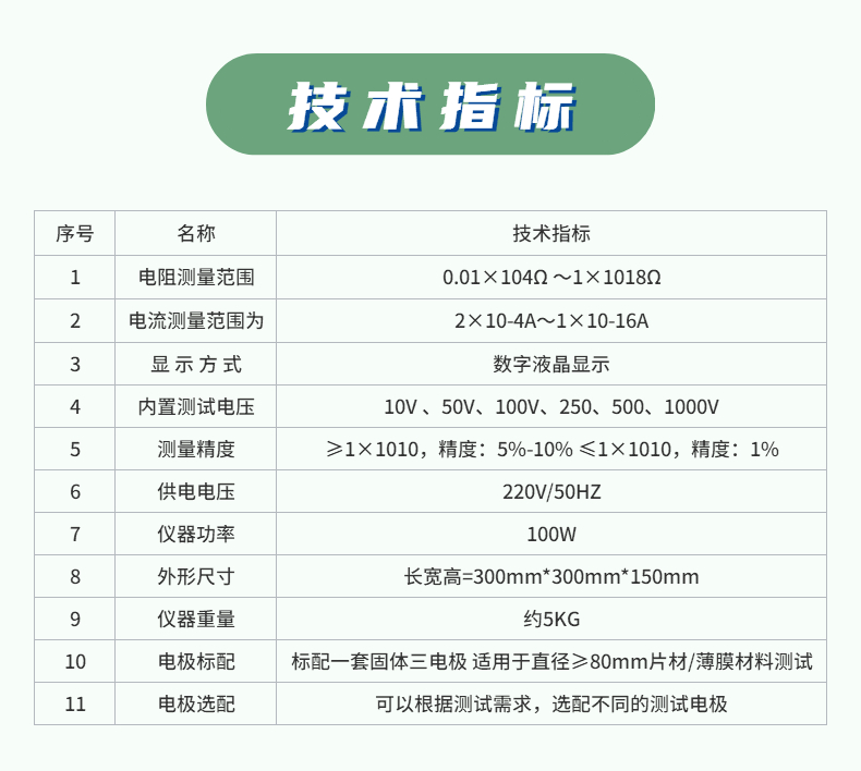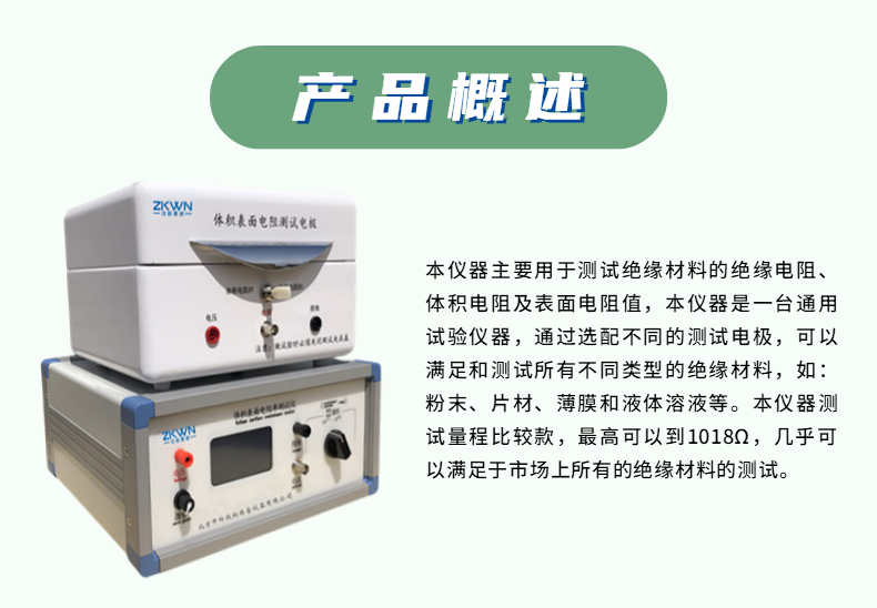 適用于橡膠、塑料、薄膜、塊體等絕緣材料及粉體、液體、固體和膏體形狀的各種絕緣材料體積和表面電阻值的測(cè)定。
