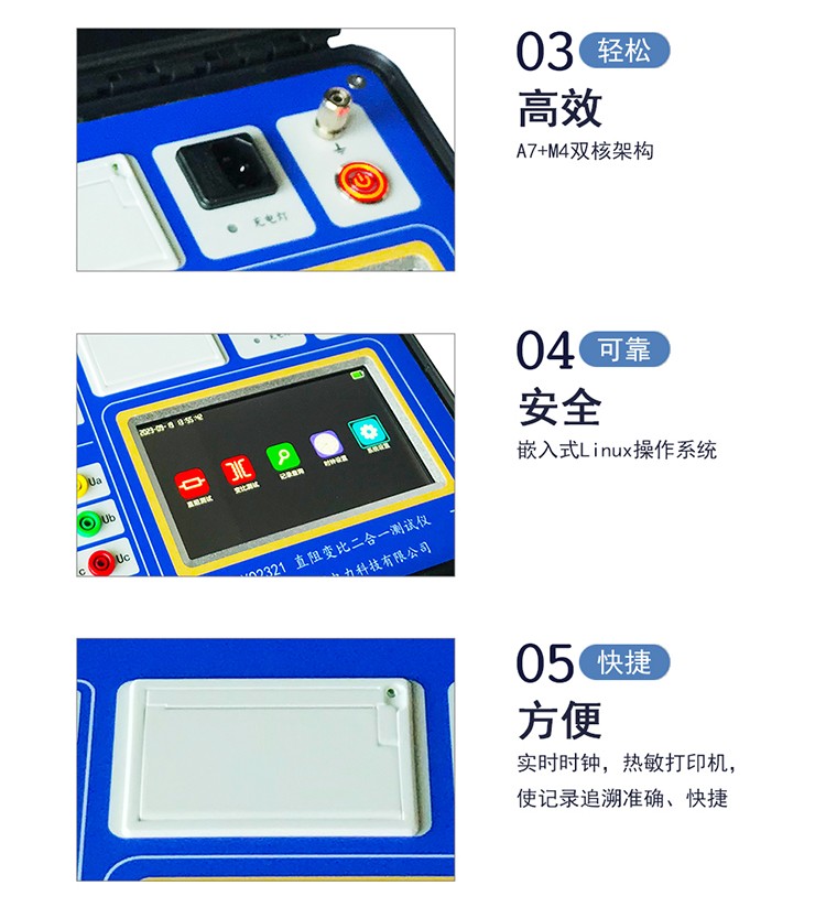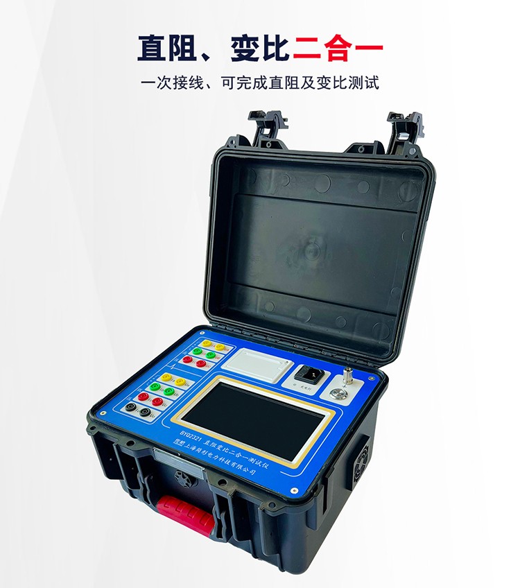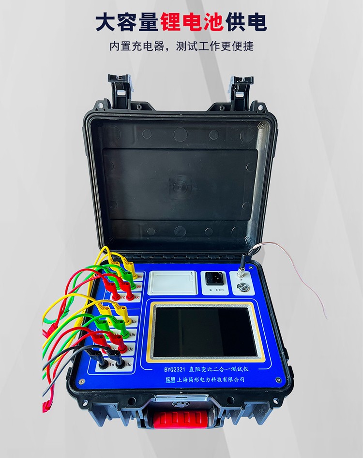 我公司創(chuàng)新性的研發(fā)出大容量鋰電池供電的二合一配電變壓器測試系統(tǒng)(直阻+變比),我們僅需要一套設(shè)備,可以完成兩個項目的測試,不需要頻繁的拆接測試線。
