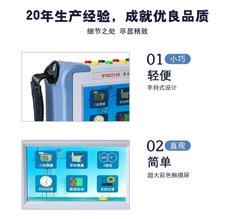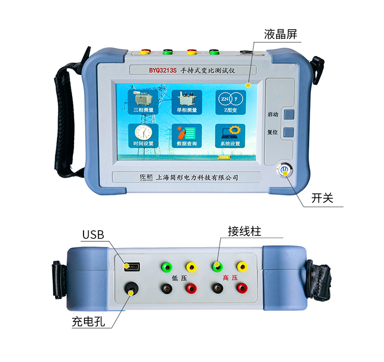 在電力變壓器的半成品、成品生產(chǎn)過(guò)程中,新安裝的變壓器投入運(yùn)行之前及根據(jù)國(guó)家電力部的預(yù)防性試驗(yàn)規(guī)程,要求對(duì)運(yùn)行的變壓器進(jìn)行匝數(shù)比或電壓比測(cè)試,可以檢查變壓器匝數(shù)比的正確性、分接開(kāi)關(guān)的狀況、變壓器是否匝間短路、變壓器是否可以并列運(yùn)行。傳統(tǒng)的變比電橋讀數(shù)不直觀,要進(jìn)行換算,只能逐相進(jìn)行測(cè)量。佐航BYQ3213S手持變壓器變比測(cè)試儀克服了傳統(tǒng)變比電橋測(cè)試的缺點(diǎn),操作簡(jiǎn)便直觀,采用三相精密逆變電源,測(cè)試快,準(zhǔn)確度高。
