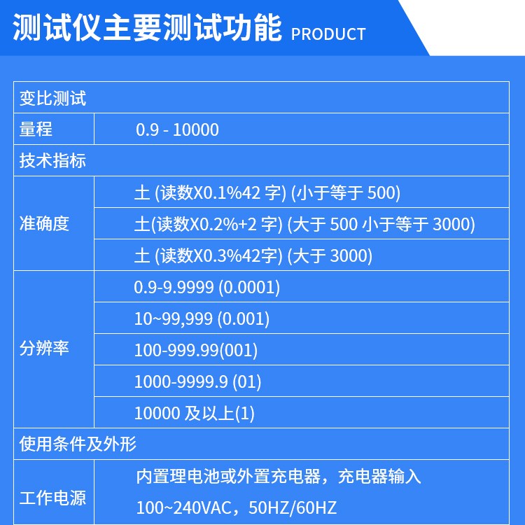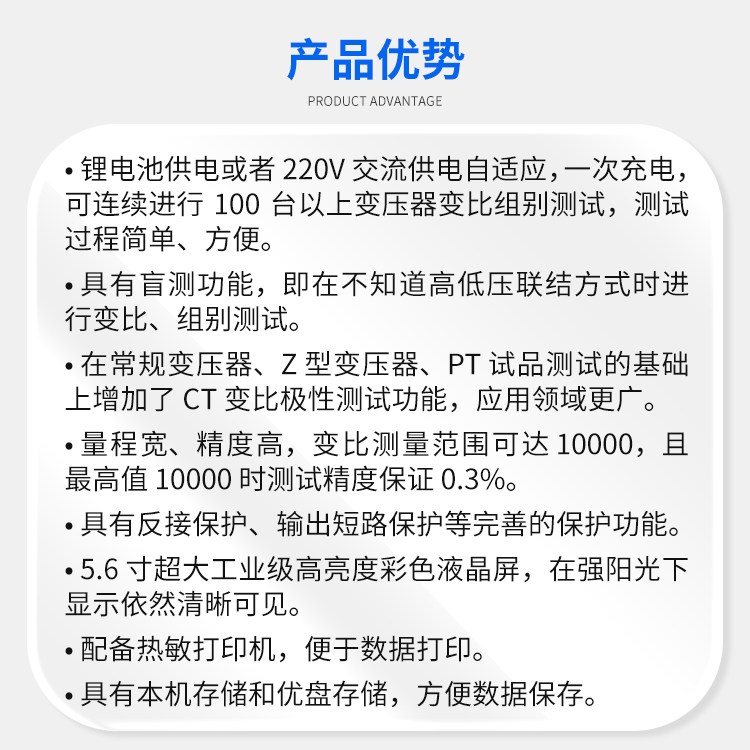 >有2個(gè)輸出電壓可共選擇,可測(cè)空載電流較大的變壓器。