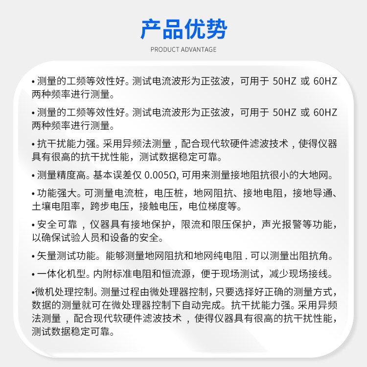 1.測(cè)量的工頻等效性好。測(cè)試電流波形為正弦波,頻率與工頻相差最小0.1Hz,大的為10Hz??捎糜?0hz或60hz兩種頻率進(jìn)行測(cè)量。