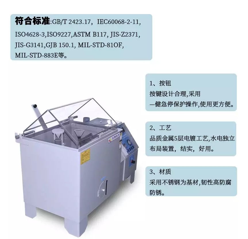 試驗(yàn)箱的箱體材質(zhì)應(yīng)具有良好的耐腐蝕性,以長期承受鹽霧環(huán)境的侵蝕。通常不銹鋼材質(zhì)優(yōu)于普通鋼材。