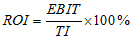 項(xiàng)目投資收益率是指項(xiàng)目達(dá)到設(shè)計(jì)能力后正常年份的年息稅前利潤或營運(yùn)期內(nèi)年平均息稅前利潤(EBIT)與項(xiàng)目總投資(TI)的比率。總投資收益率高于同行業(yè)的收益率參考值,表明用總投資收益率表示的盈利能力滿足要求。