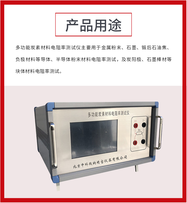 多功能炭素材料電阻率測試儀主要用于金屬粉末、石墨、鍛后石油焦、負極材料等導(dǎo)體、半導(dǎo)體粉末材料電阻率測試,及炭陽極、石墨棒材等塊體材料電阻率測試。