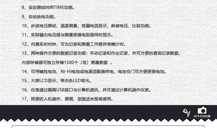 VICTOR 3126 絕緣電阻測試儀是一臺智能微型儀器即絕緣測試儀器,整機電路設(shè)計采用微機技術(shù)設(shè)計為核心,以大規(guī)模集成電路和數(shù)字電路相組合,配有強大的測量和數(shù)據(jù)處理軟件,完成絕緣電阻、電壓等參數(shù)測量,性能穩(wěn)定,操作簡便。對于適用于現(xiàn)場電力設(shè)備以及供電線路的測量和檢修的用戶,本儀器是您的理想的選擇。