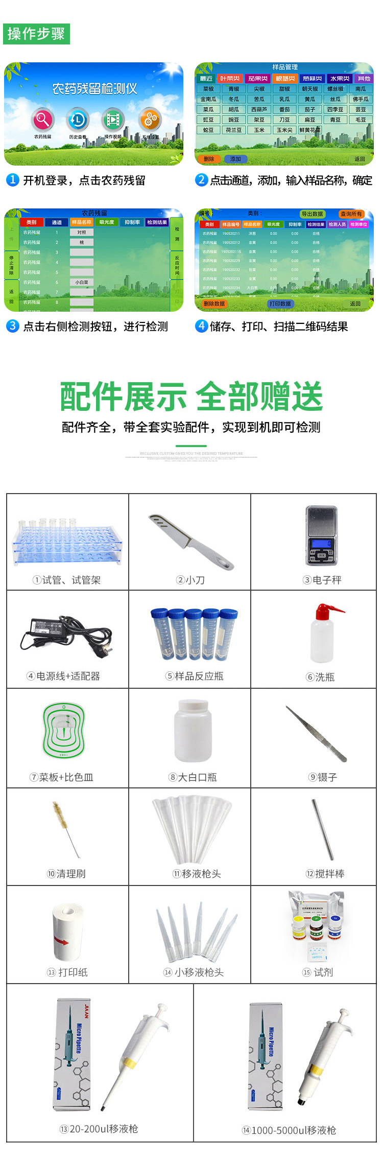 3、儀器具有100多種蔬菜名稱菜單庫,分類管理,并可按需添加或刪除蔬菜名,編輯蔬菜名稱,可直接打印出蔬菜名稱。