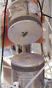 GDS 彎曲晶片被包裝固定在試樣帽或底座的“插入物”中。試樣帽的插入物由鈦制成,可以提供很高的軸向硬度,與用不銹鋼制成的底座插入物相比,重量輕了一半。這可以將對(duì)軸向載荷的影響降到最小。