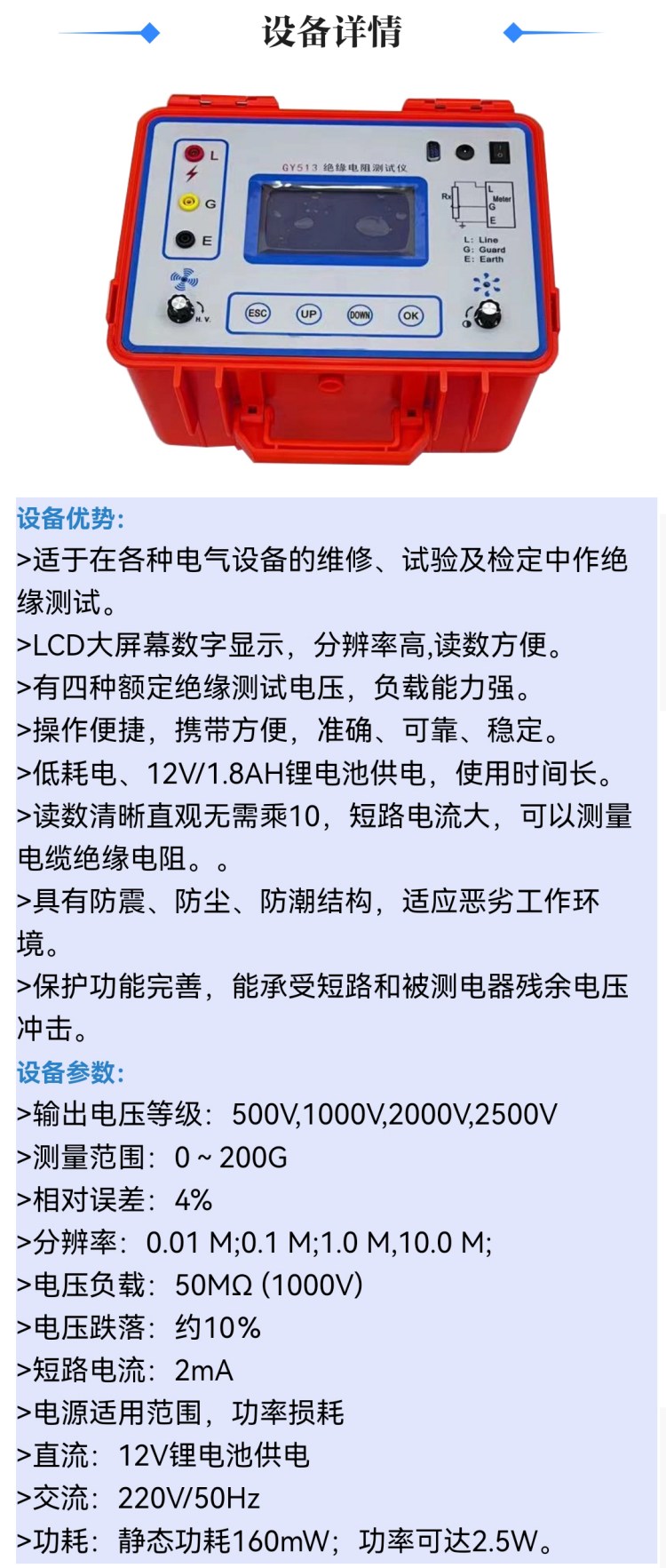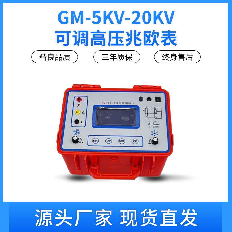GM-5KV/10KV/15KV/20KV系列可調(diào)高壓數(shù)字兆歐表測試電壓高,功率大,被測量對象往往又帶有工頻泄漏或感應(yīng)上高壓干擾電能,因此為了人身安全,使用該儀器首先一定要接好安全接地線??烧{(diào)高壓數(shù)字兆歐表是為了解決高壓變電站、發(fā)電廠現(xiàn)場強(qiáng)干擾下對大型高壓變壓器、電機(jī)電器、遠(yuǎn)程電力電纜或埋設(shè)電纜等電氣絕緣電阻特性的測試而設(shè)計研制。它亦可用于廣泛領(lǐng)域的電氣絕緣電阻特性測量。