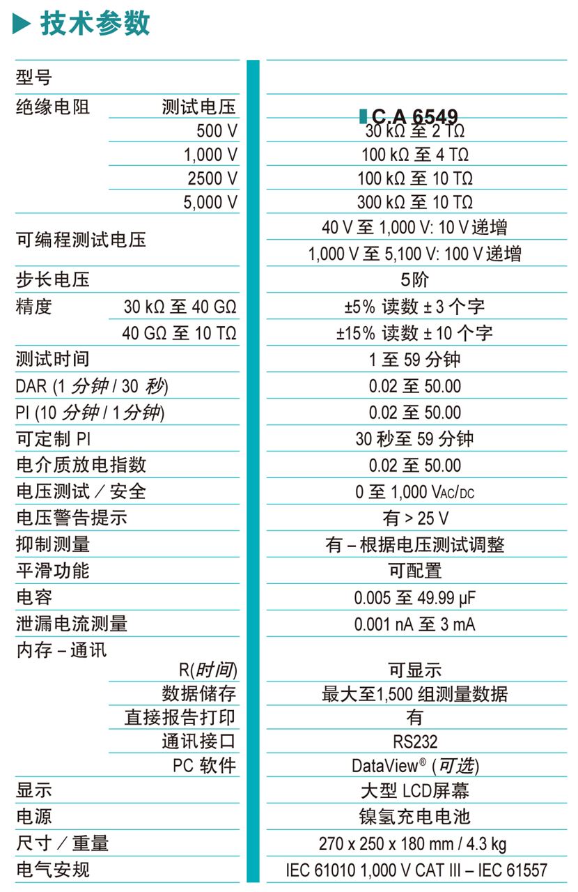 法國(guó)CA絕緣電阻測(cè)試儀C.A 6549關(guān)鍵指標(biāo)