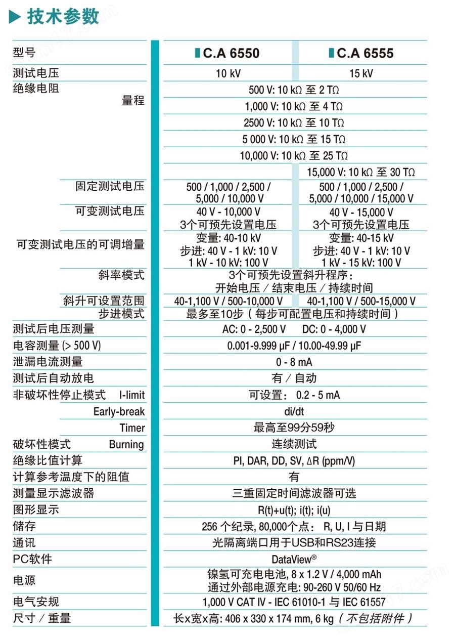 法國CA絕緣電阻測試儀C.A 6550 關鍵指標